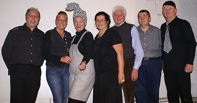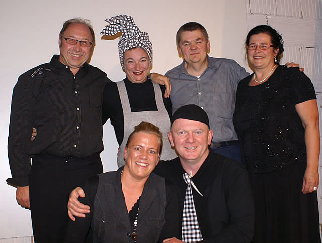 Beanspruchten die Lachmuskeln: Hinten: Raiffeisenbank-Geschäftsleiter Johann Demmelbauer-Ebner, Weinbeißerwirtstochter Simone Diebetsberger, Edi Jäger und Sylvia Lang. Vorne: Anita Köchl und Tischler Bezirksobermeister Franz Lang.